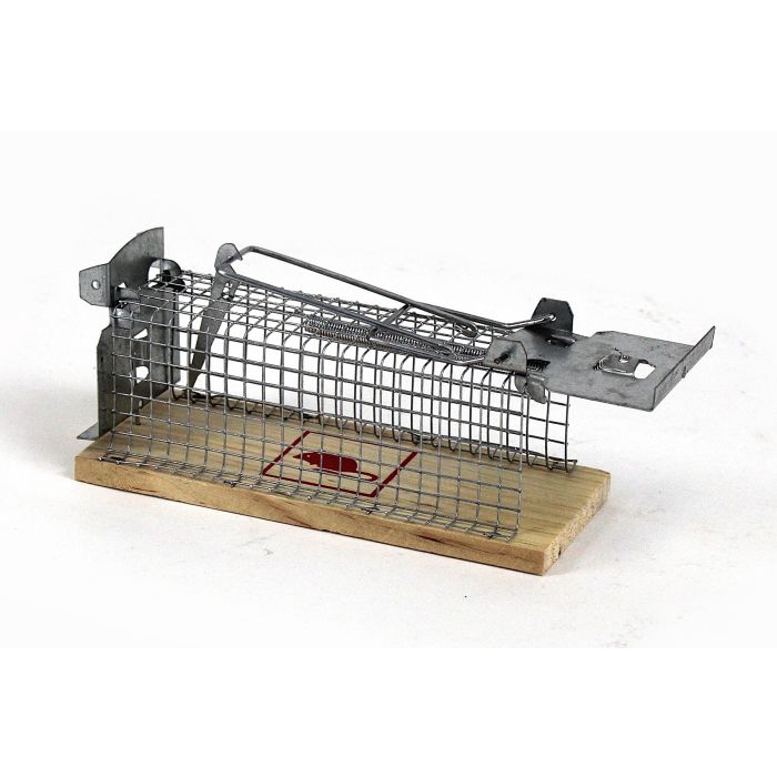 Diervriendelijke muizenvangkooi met houten bodem, geschikt voor het meermaals levend vangen van muizen. Plaats het aas aan het haakje en zet het deurtje van de val open. De achterkant van de val kan worden geopend, zodat u eenvoudig bij het haakje kunt. Zodra de muis van het aas eet, valt het deurtje dicht en zit de muis veilig opgesloten.