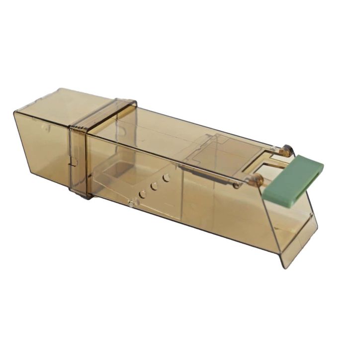 De Trip Trap diervriendelijke muizenval vangt muizen levend en zonder verwonding. Zodra de muis naar binnen loopt, sluit het mechanisme automatisch. Dankzij het transparante ontwerp ziet u direct of er een vangst is. Ventilatieopeningen zorgen voor voldoende lucht.